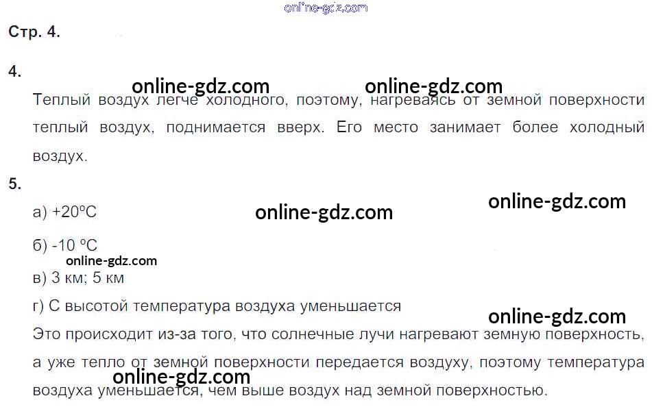 Готовые домашние задания по Окружающему миру за 4 класс Рабочая тетрадь Ивченкова, Потапов Планета знаний 2017 - Часть 1. Страницы 4
