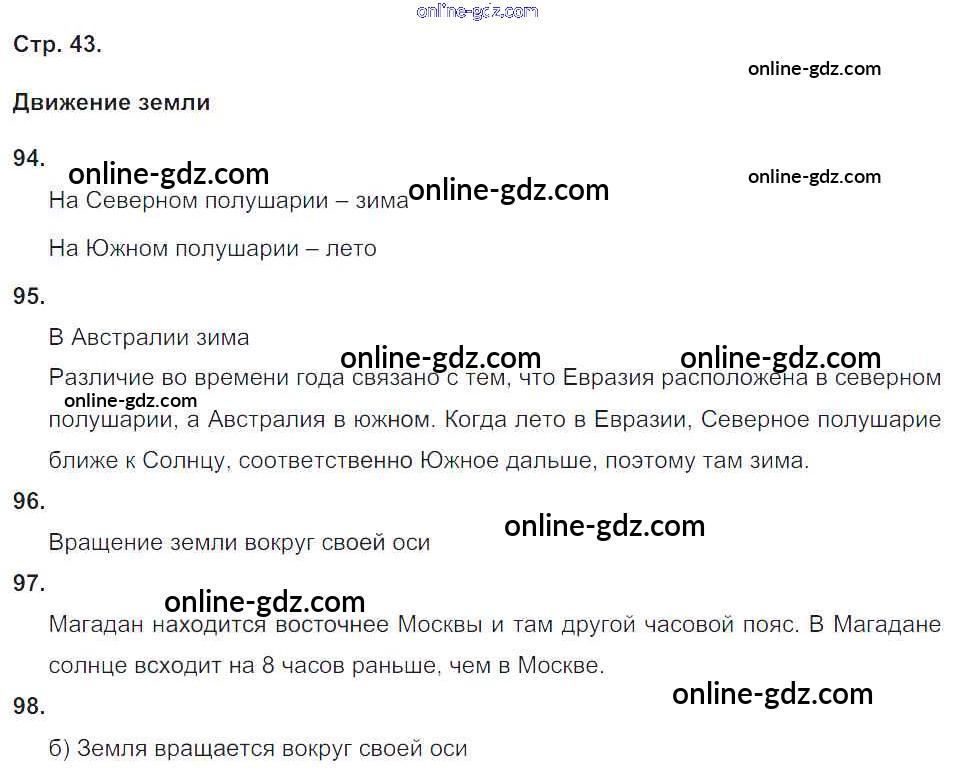 Готовые домашние задания по Окружающему миру за 4 класс Рабочая тетрадь Ивченкова, Потапов Планета знаний 2017 - Часть 1. Страницы 43