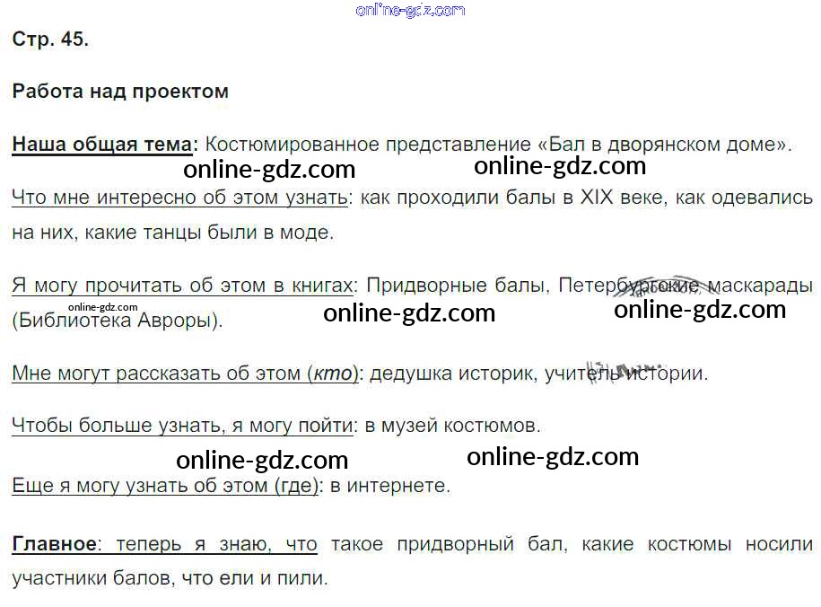 Готовые домашние задания по Окружающему миру за 4 класс Рабочая тетрадь Ивченкова, Потапов Планета знаний 2017 - Часть 2. Страницы 45