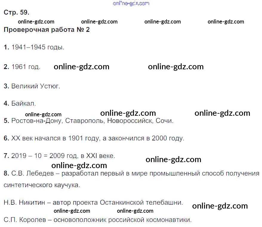 Готовые домашние задания по Окружающему миру за 4 класс Рабочая тетрадь Ивченкова, Потапов Планета знаний 2017 - Часть 2. Страницы 59