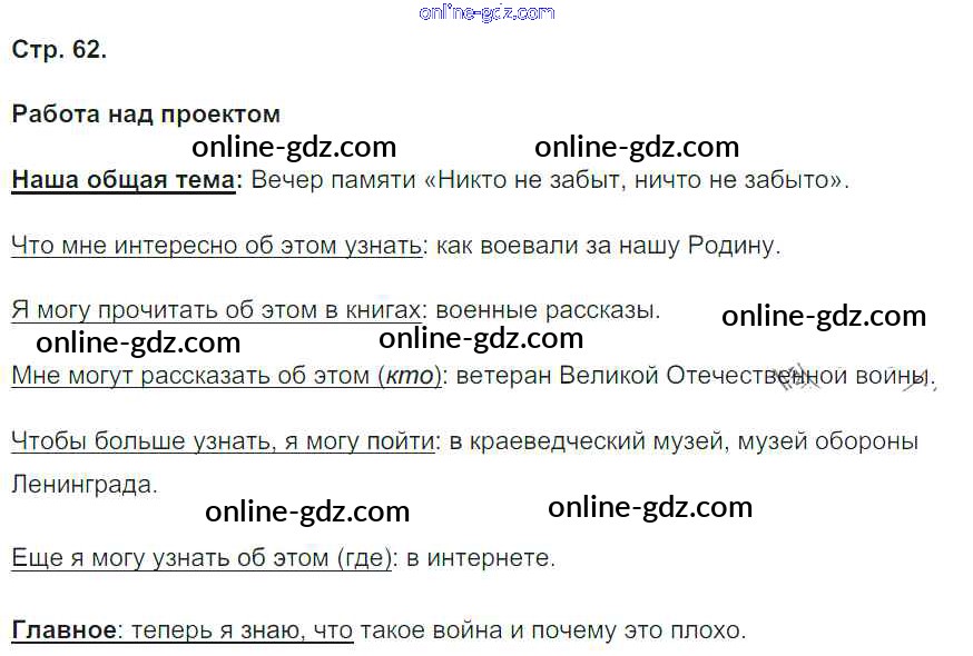 Готовые домашние задания по Окружающему миру за 4 класс Рабочая тетрадь Ивченкова, Потапов Планета знаний 2017 - Часть 2. Страницы 62