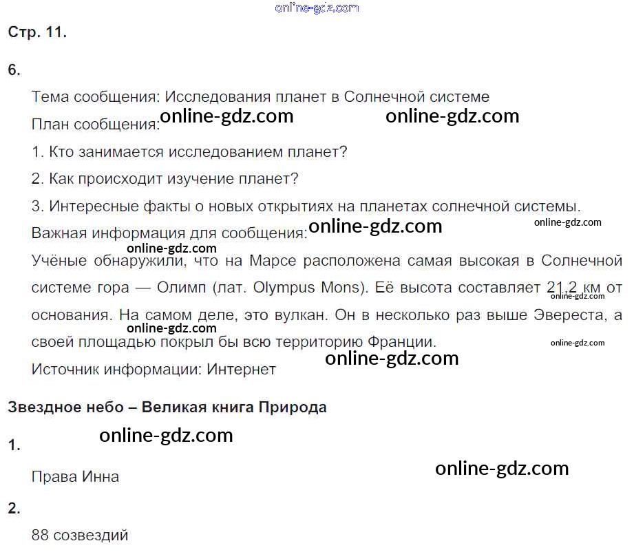 Готовые домашние задания по Окружающему миру за 4 класс Рабочая тетрадь Плешаков, Крючкова Школа России 2014 - Часть 1. Страницы 11