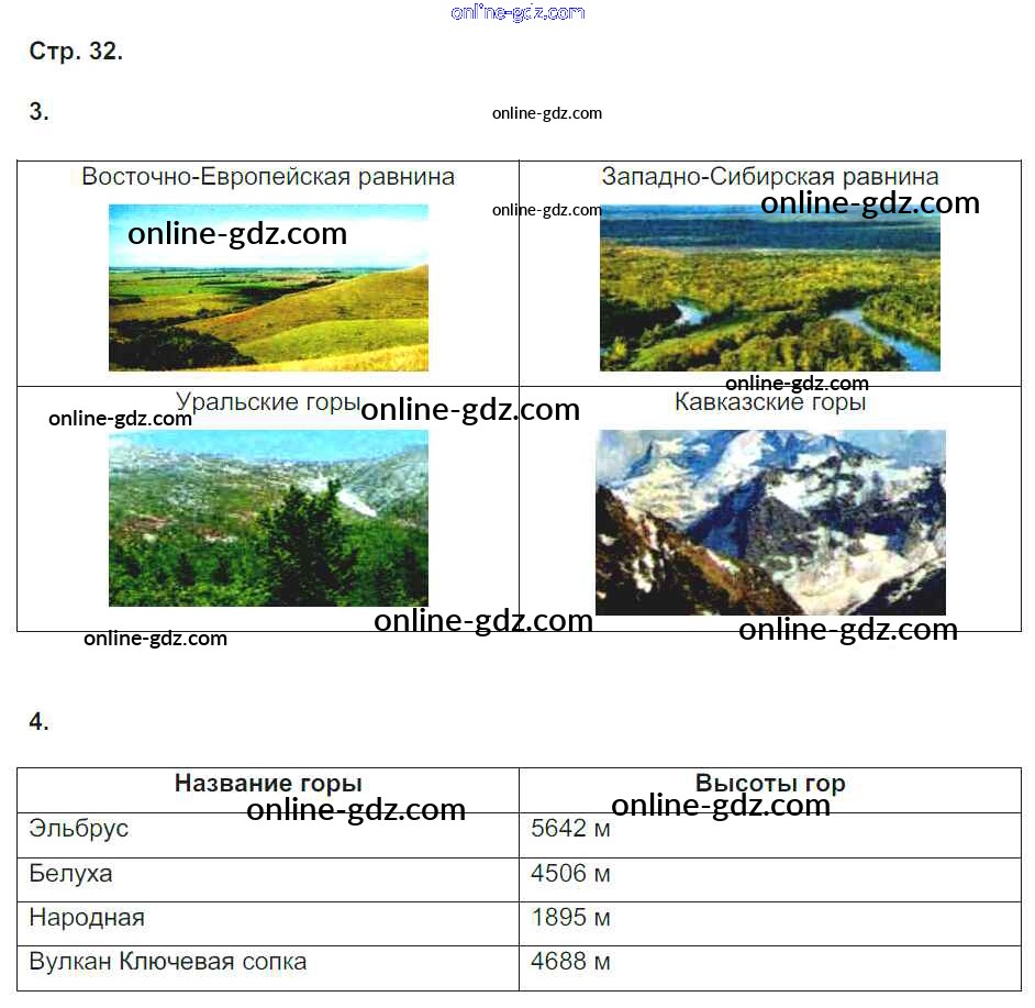 Готовые домашние задания по Окружающему миру за 4 класс Рабочая тетрадь Плешаков, Крючкова Школа России 2014 - Часть 1. Страницы 32