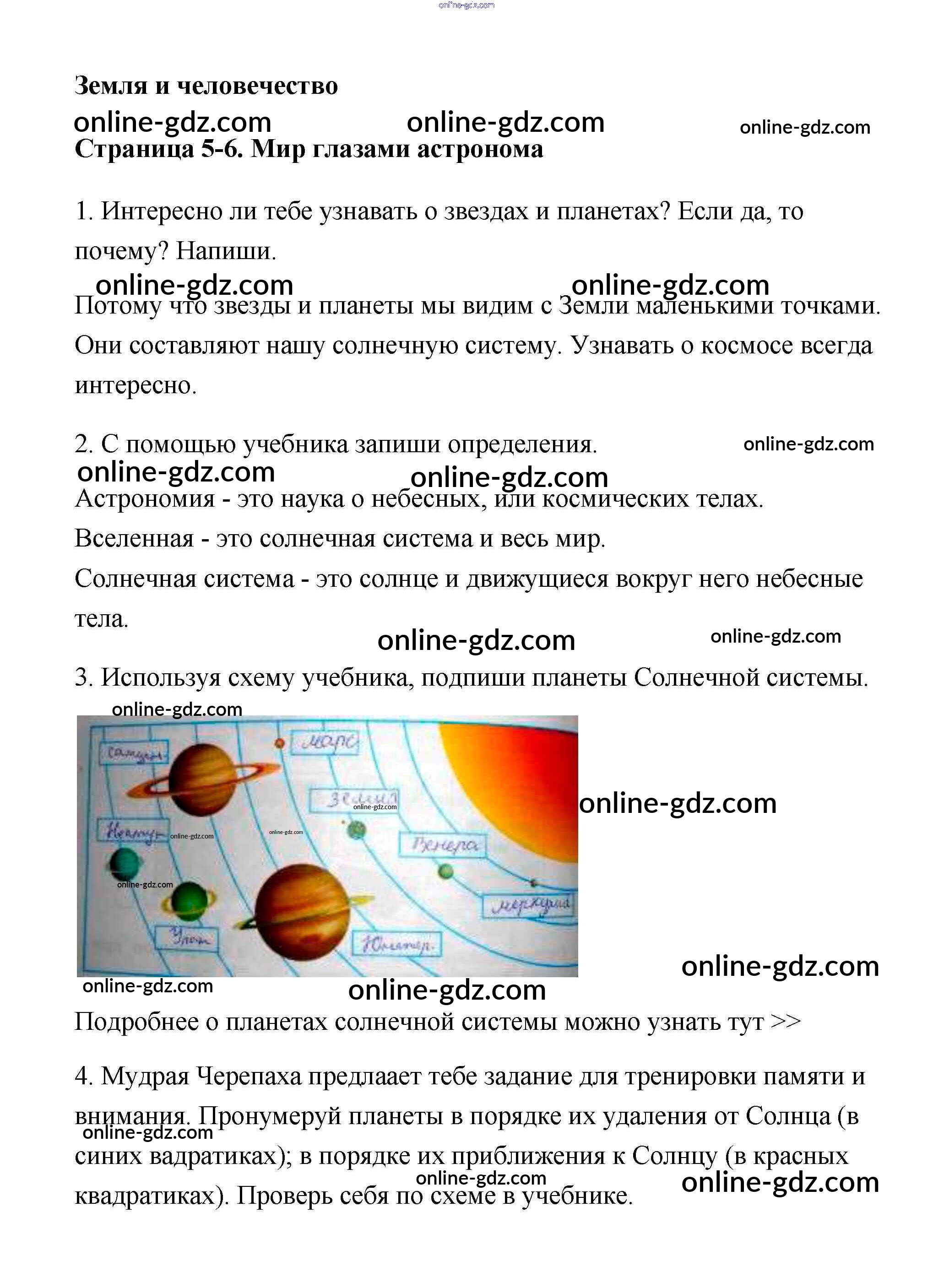 Готовые домашние задания по Окружающему миру за 4 класс Рабочая тетрадь Плешаков, Крючкова Школа России 2014 - Часть 1. Страницы 5