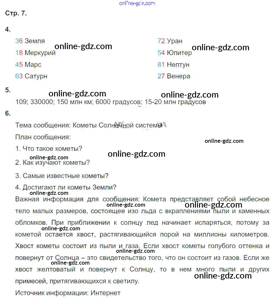 Готовые домашние задания по Окружающему миру за 4 класс Рабочая тетрадь Плешаков, Крючкова Школа России 2014 - Часть 1. Страницы 7