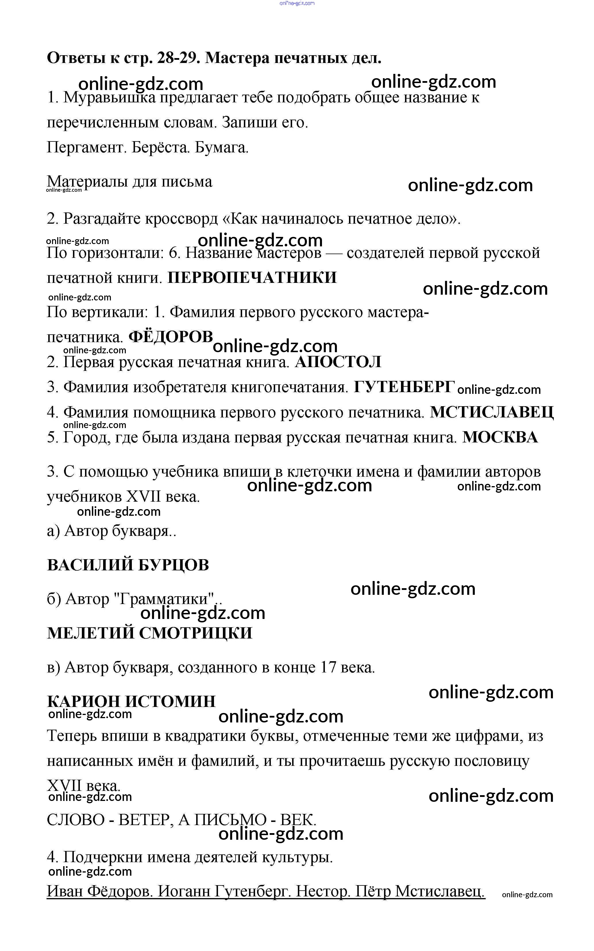 Готовые домашние задания по Окружающему миру за 4 класс Рабочая тетрадь Плешаков, Крючкова Школа России 2014 - Часть 2. Страницы 28