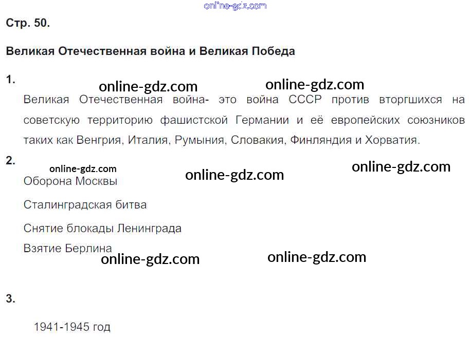 Готовые домашние задания по Окружающему миру за 4 класс Рабочая тетрадь Плешаков, Крючкова Школа России 2014 - Часть 2. Страницы 50