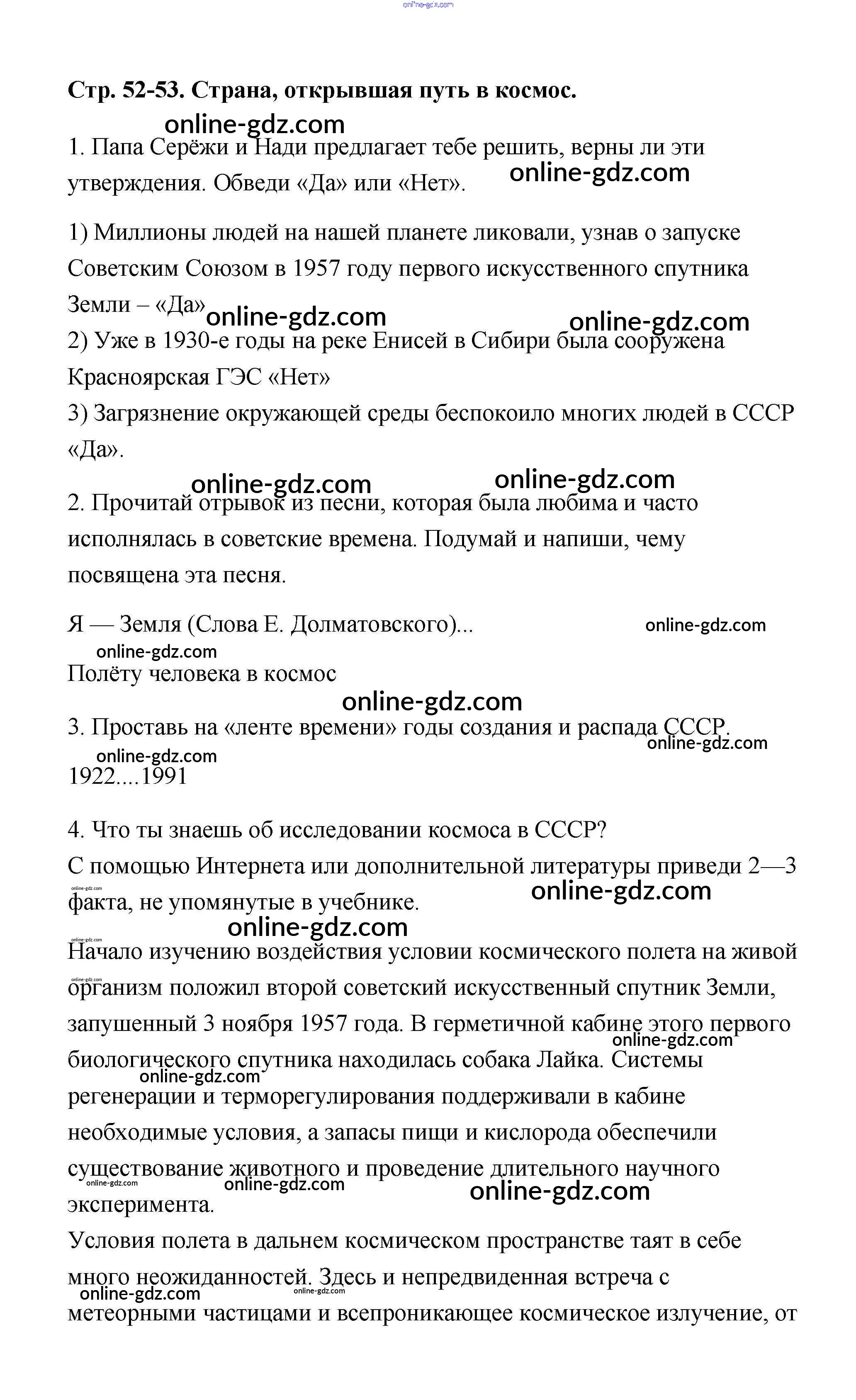 Готовые домашние задания по Окружающему миру за 4 класс Рабочая тетрадь Плешаков, Крючкова Школа России 2014 - Часть 2. Страницы 52