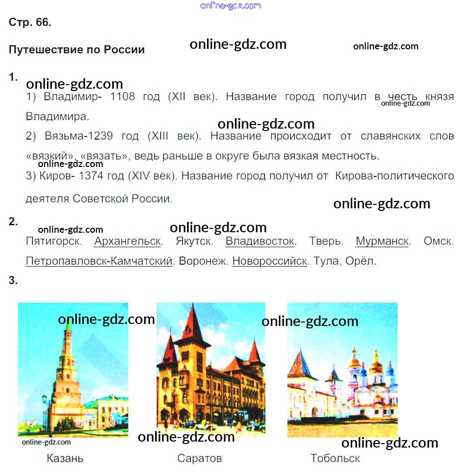 Готовые домашние задания по Окружающему миру за 4 класс Рабочая тетрадь Плешаков, Крючкова Школа России 2014 - Часть 2. Страницы 66