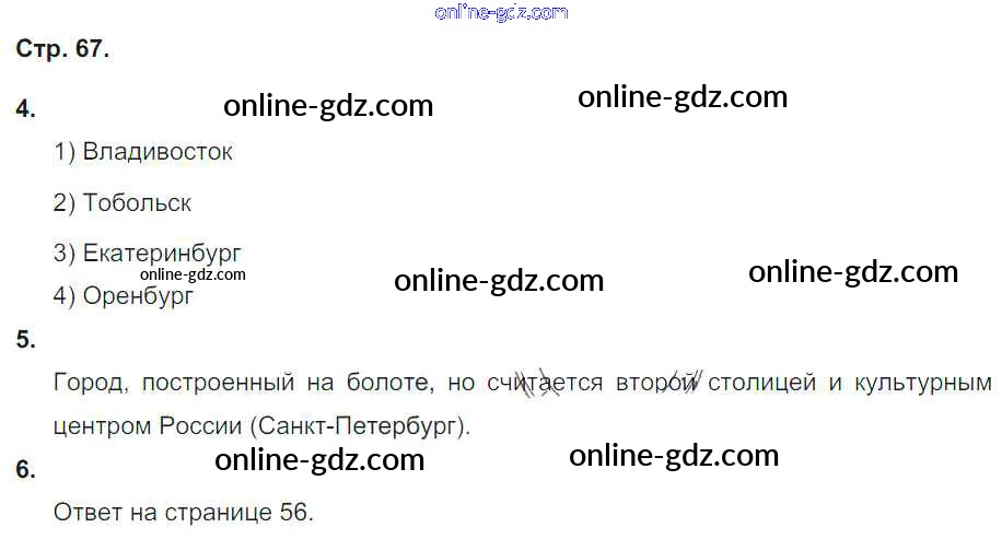 Готовые домашние задания по Окружающему миру за 4 класс Рабочая тетрадь Плешаков, Крючкова Школа России 2014 - Часть 2. Страницы 67