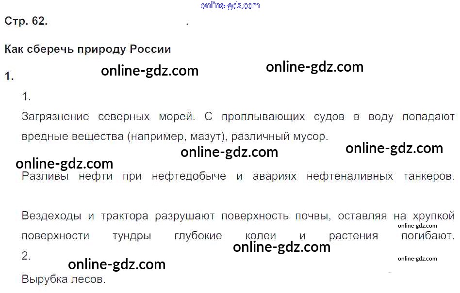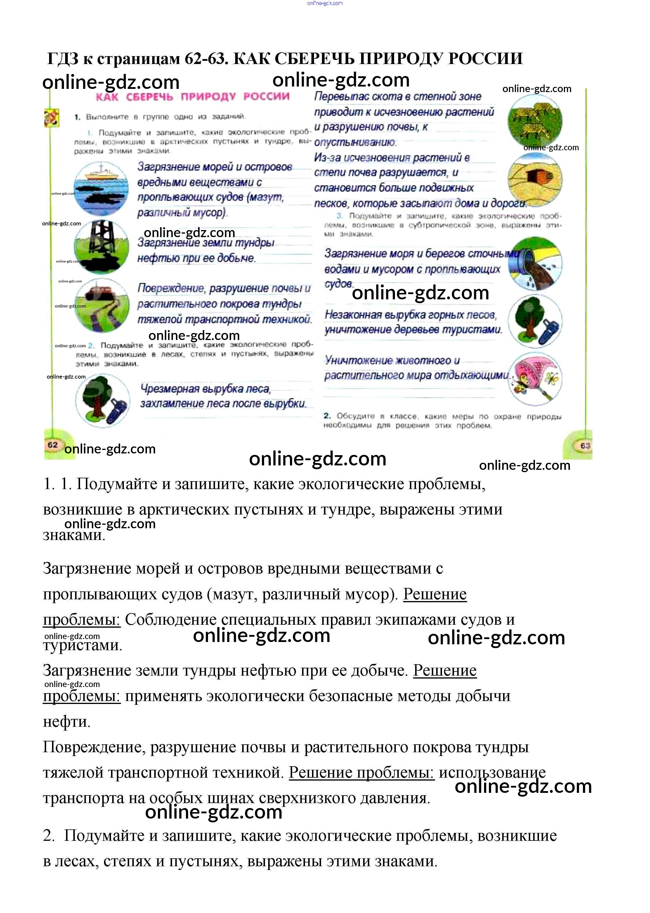 Готовые домашние задания по Окружающему миру за 4 класс Рабочая тетрадь Плешаков, Новицкая Перспектива 2015 - Часть 1. Страницы 62