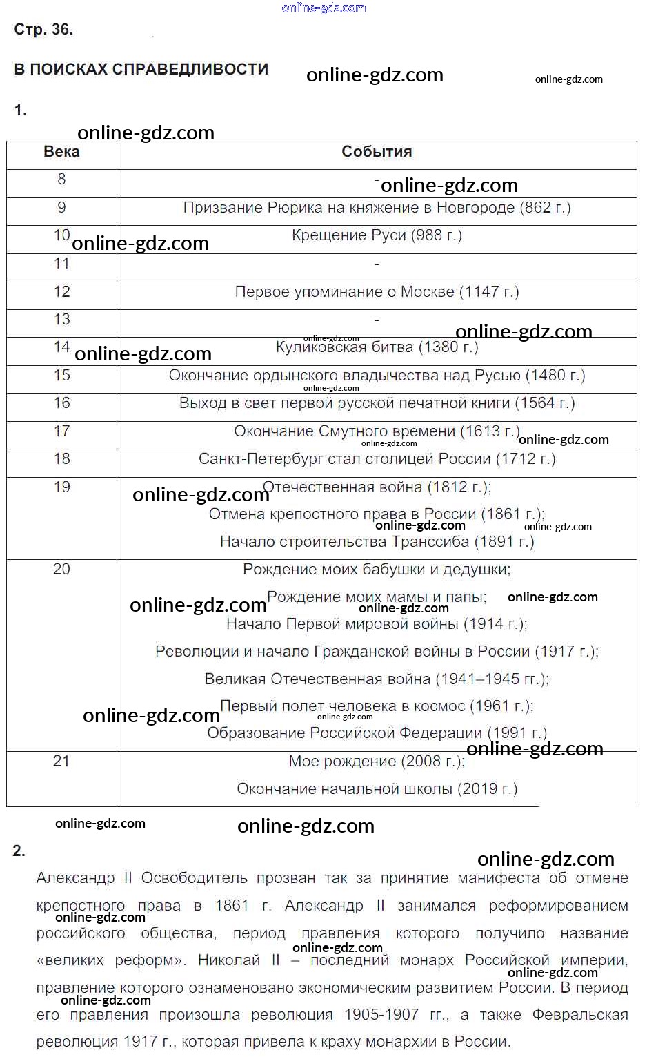 Готовые домашние задания по Окружающему миру за 4 класс Рабочая тетрадь Плешаков, Новицкая Перспектива 2015 - Часть 2. Страницы 36