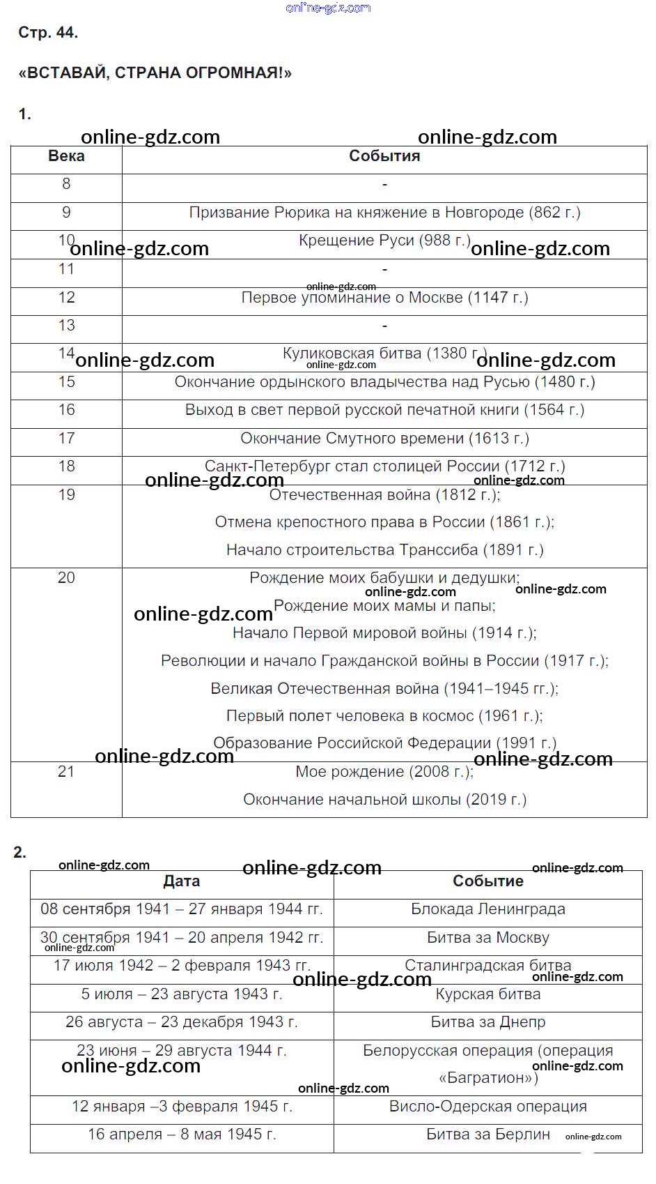 Готовые домашние задания по Окружающему миру за 4 класс Рабочая тетрадь Плешаков, Новицкая Перспектива 2015 - Часть 2. Страницы 44