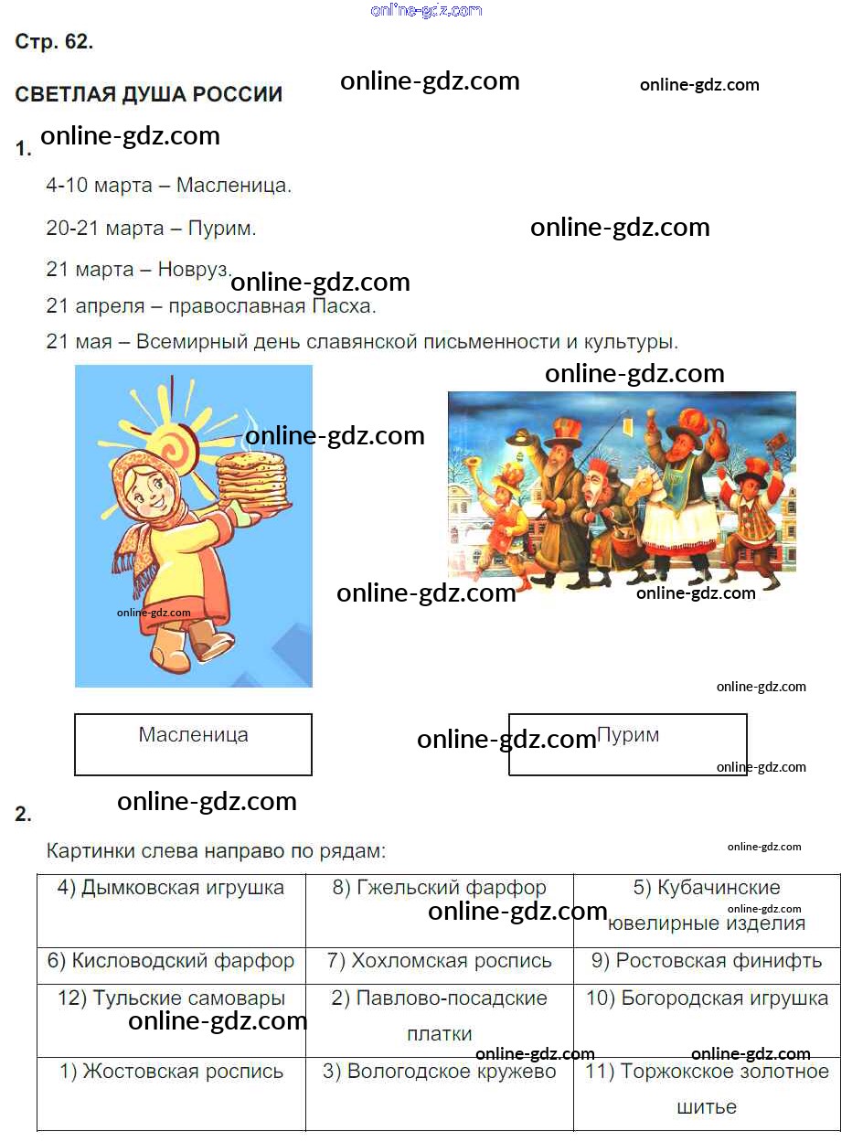 Готовые домашние задания по Окружающему миру за 4 класс Рабочая тетрадь Плешаков, Новицкая Перспектива 2015 - Часть 2. Страницы 62
