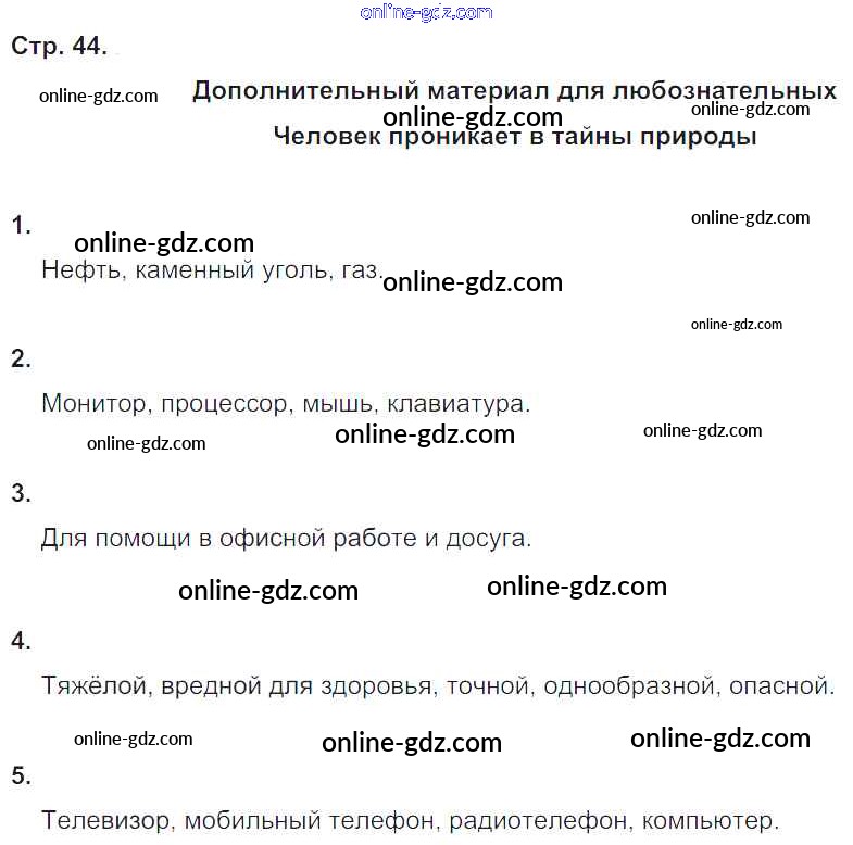 Готовые домашние задания по Окружающему миру за 4 класс Рабочая тетрадь Вахрушев, Бурский Школа 2100 2016 - Часть 1. Страницы 44