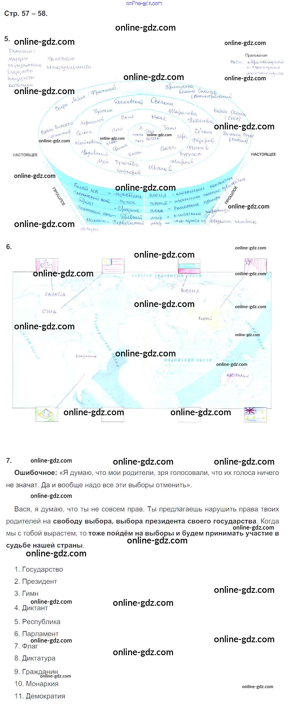 Готовые домашние задания по Окружающему миру за 4 класс Рабочая тетрадь Вахрушев, Бурский Школа 2100 2016 - Часть 1. Страницы 57