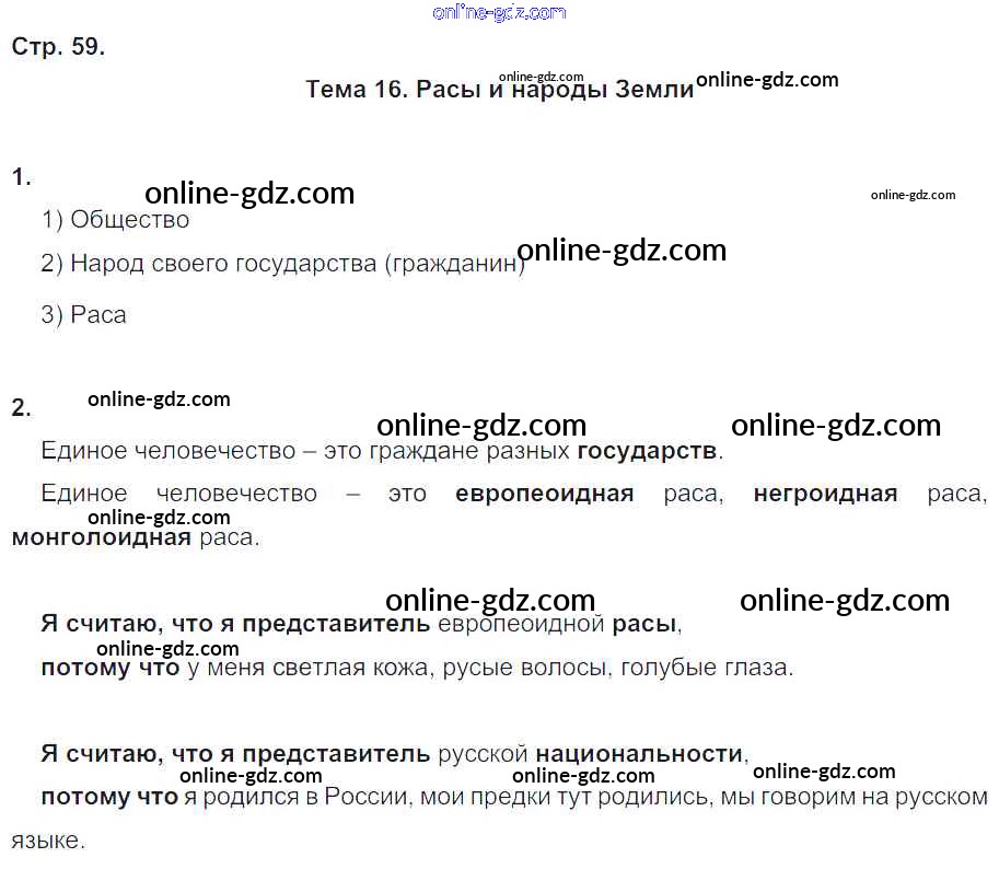 Готовые домашние задания по Окружающему миру за 4 класс Рабочая тетрадь Вахрушев, Бурский Школа 2100 2016 - Часть 1. Страницы 59