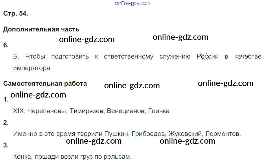 Готовые домашние задания по Окружающему миру за 4 класс Тесты и самостоятельные работы для текущего контроля Потапов, Калинина Планета знаний 2020 - Страницы 54