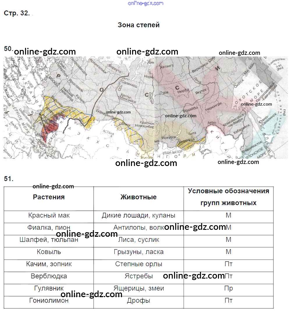 Готовые домашние задания по Окружающему миру за 4 класс Тетрадь для самостоятельной работы Федотова, Трафимова Перспективная начальная школа 2017 - Часть 1. Страницы 32