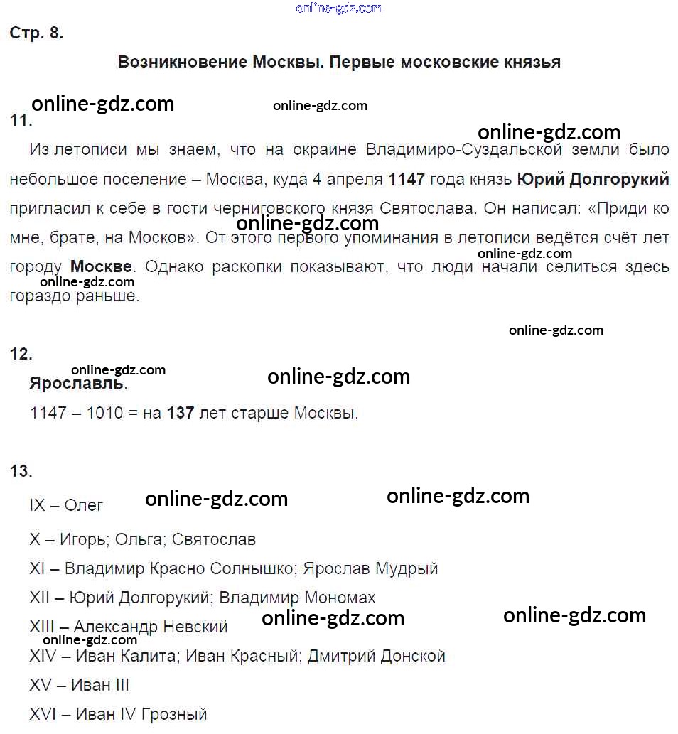 Готовые домашние задания по Окружающему миру за 4 класс Тетрадь для самостоятельной работы Федотова, Трафимова Перспективная начальная школа 2017 - Часть 1. Страницы 8