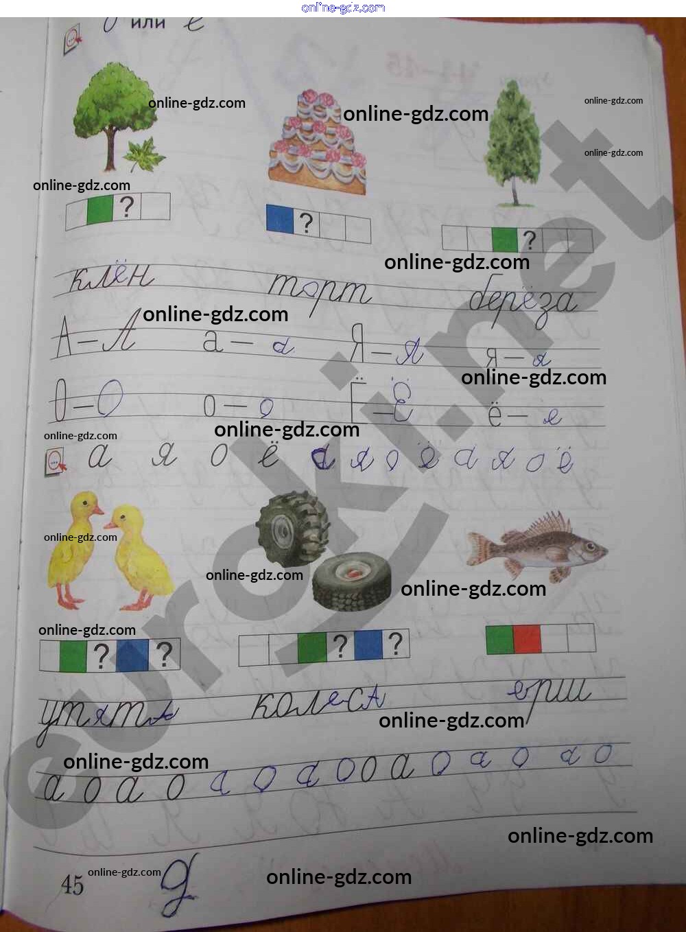 Готовые домашние задания по Русскому языку за 1 класс Рабочая тетрадь Безруких, Кузнецова УМК 2019 - Часть 1. Страницы 45