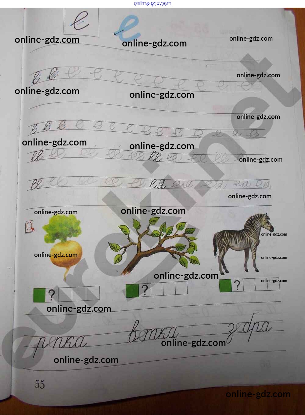 Готовые домашние задания по Русскому языку за 1 класс Рабочая тетрадь Безруких, Кузнецова УМК 2019 - Часть 1. Страницы 55