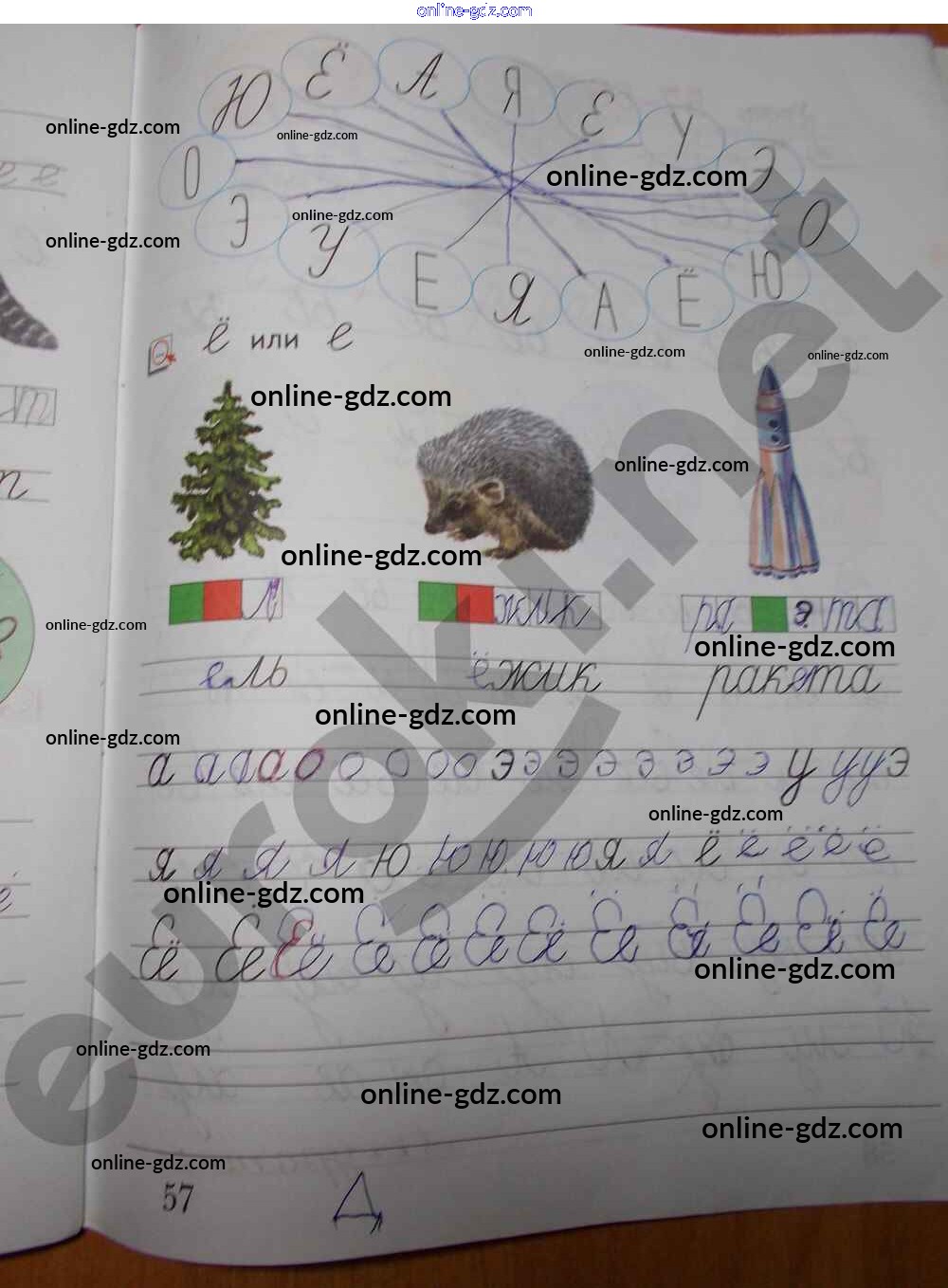 Готовые домашние задания по Русскому языку за 1 класс Рабочая тетрадь Безруких, Кузнецова УМК 2019 - Часть 1. Страницы 57