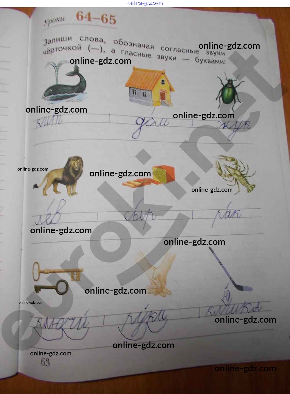 Готовые домашние задания по Русскому языку за 1 класс Рабочая тетрадь Безруких, Кузнецова УМК 2019 - Часть 1. Страницы 63