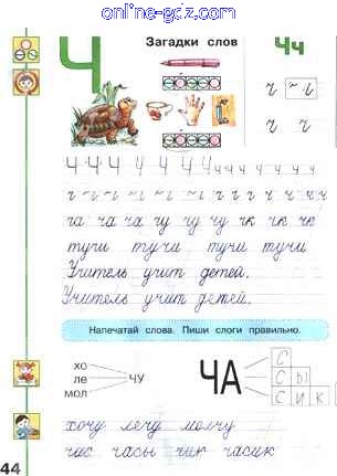 Готовые домашние задания по Русскому языку за 1 класс Прописи Климанова, Абрамов Перспектива 2021 - Часть 2. Страницы 44