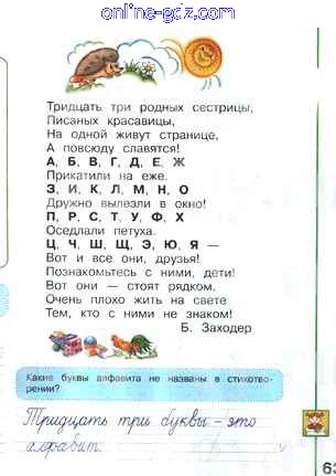 Готовые домашние задания по Русскому языку за 1 класс Прописи Климанова, Абрамов Перспектива 2021 - Часть 2. Страницы 63