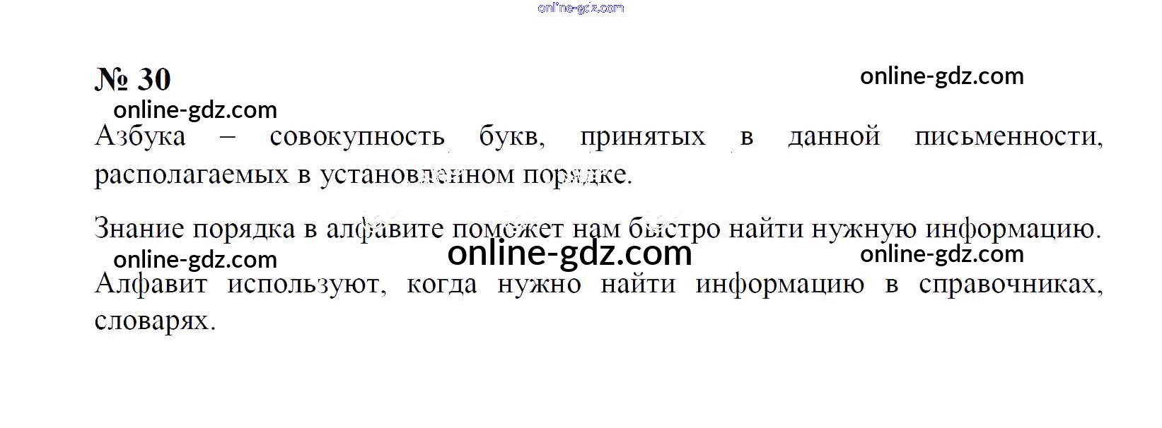 Готовые домашние задания по Русскому языку за 1 класс Рабочая тетрадь Рамзаева, Савинкина 2019 - Упражнения 30
