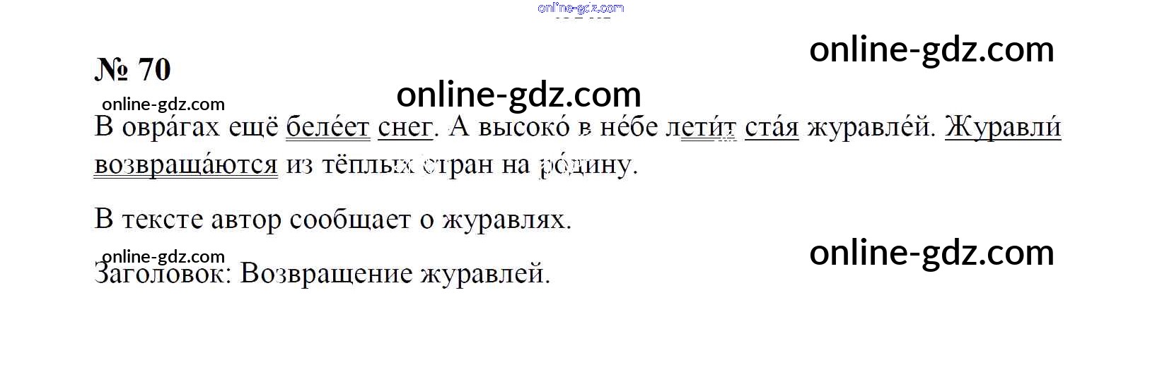 Готовые домашние задания по Русскому языку за 1 класс Рабочая тетрадь Рамзаева, Савинкина 2019 - Упражнения 70