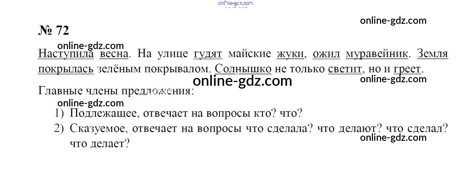 Готовые домашние задания по Русскому языку за 1 класс Рабочая тетрадь Рамзаева, Савинкина 2019 - Упражнения 72