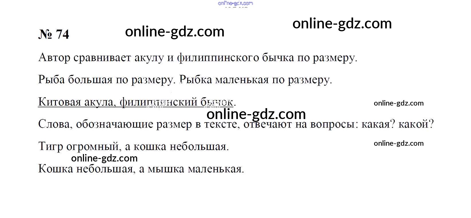 Готовые домашние задания по Русскому языку за 1 класс Рабочая тетрадь Рамзаева, Савинкина 2019 - Упражнения 74