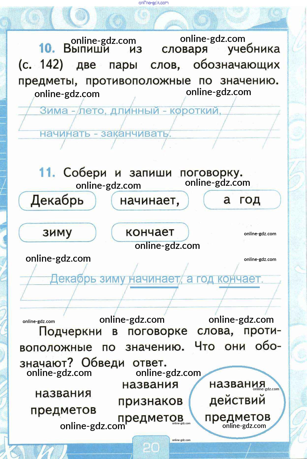 Готовые домашние задания по Русскому языку за 1 класс Рабочая тетрадь Тихомирова УМК 2016 - Страницы 20