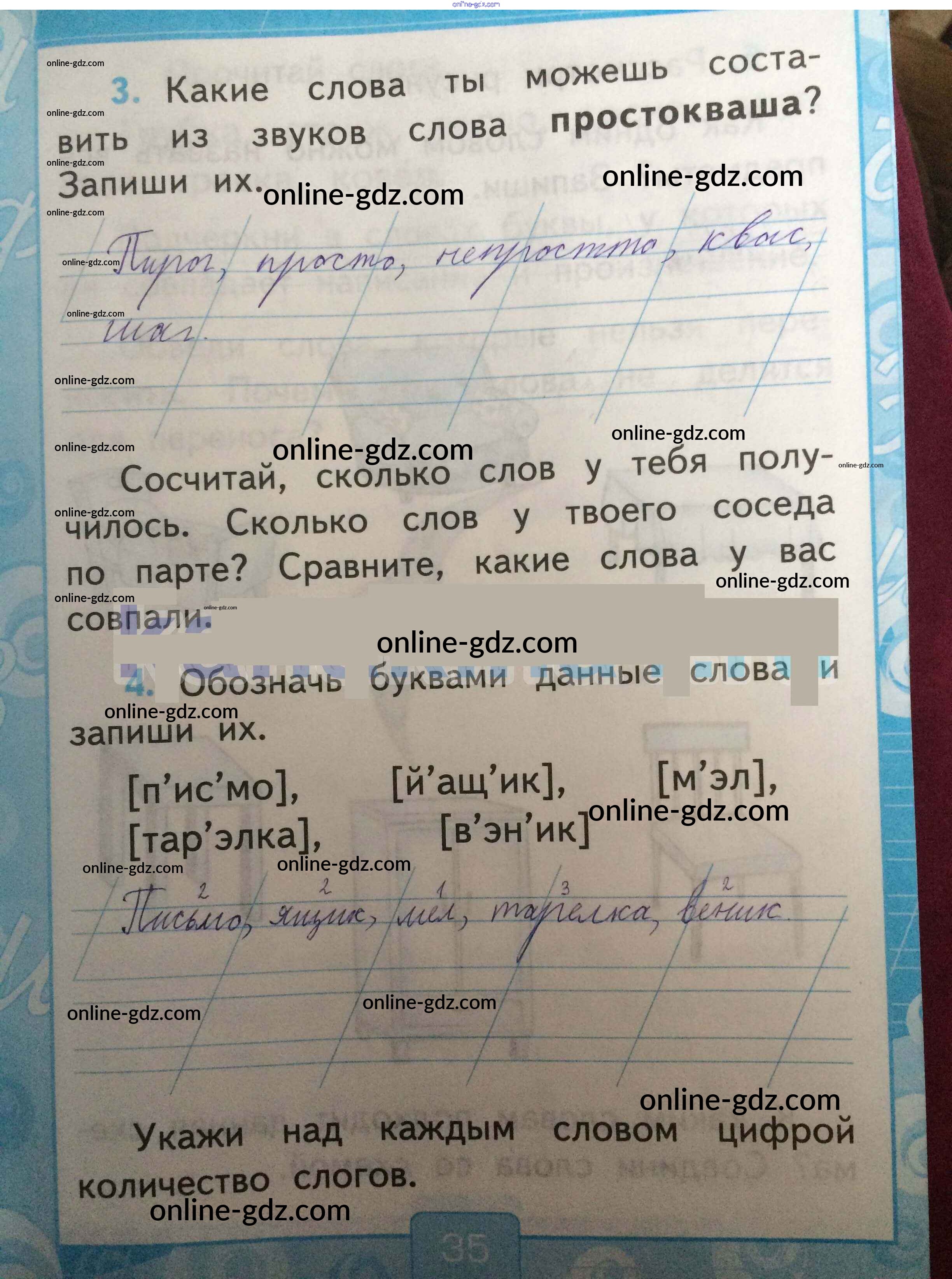 Готовые домашние задания по Русскому языку за 1 класс Рабочая тетрадь Тихомирова УМК 2016 - Страницы 35