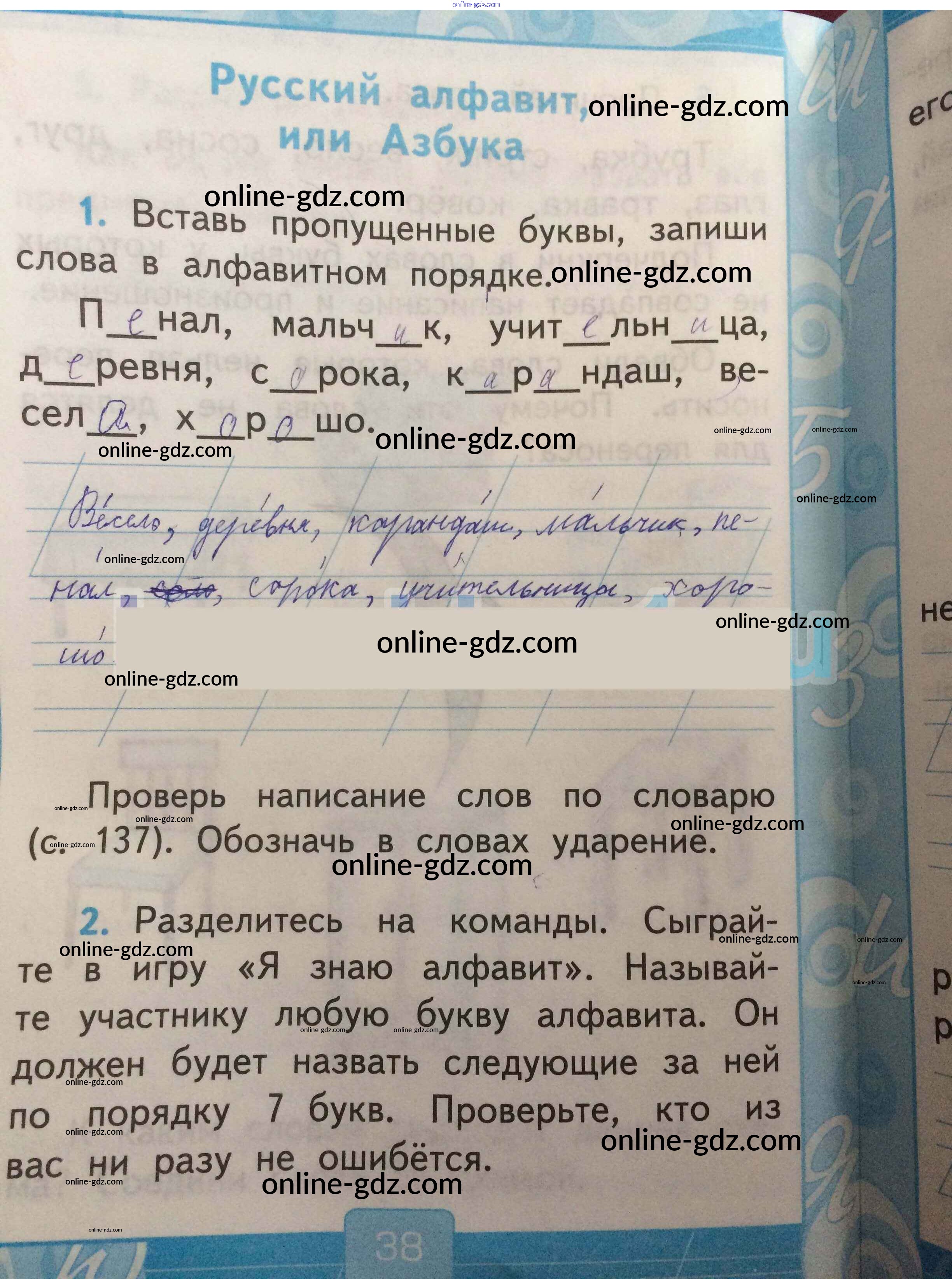 Готовые домашние задания по Русскому языку за 1 класс Рабочая тетрадь Тихомирова УМК 2016 - Страницы 38