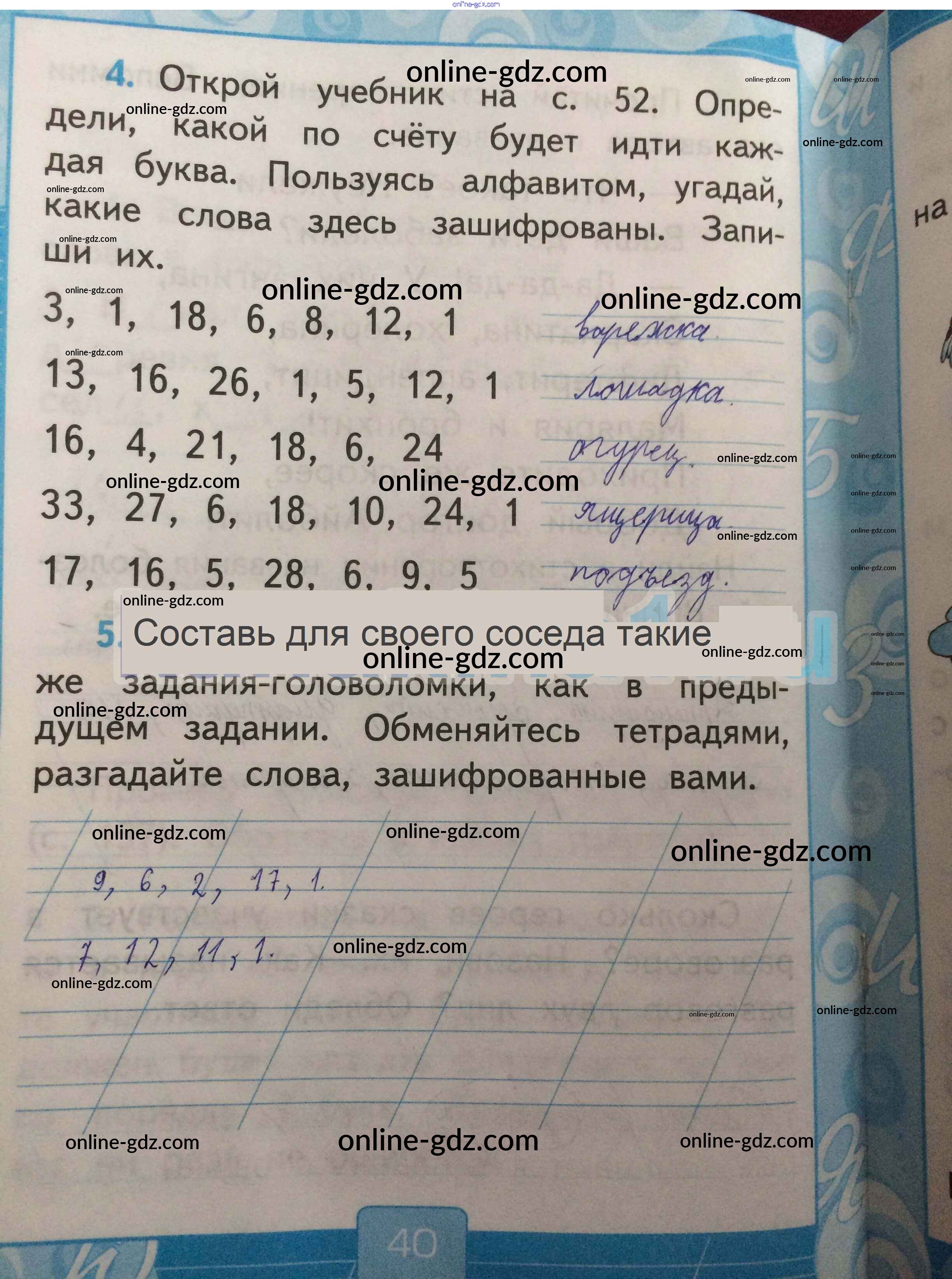 Готовые домашние задания по Русскому языку за 1 класс Рабочая тетрадь Тихомирова УМК 2016 - Страницы 40