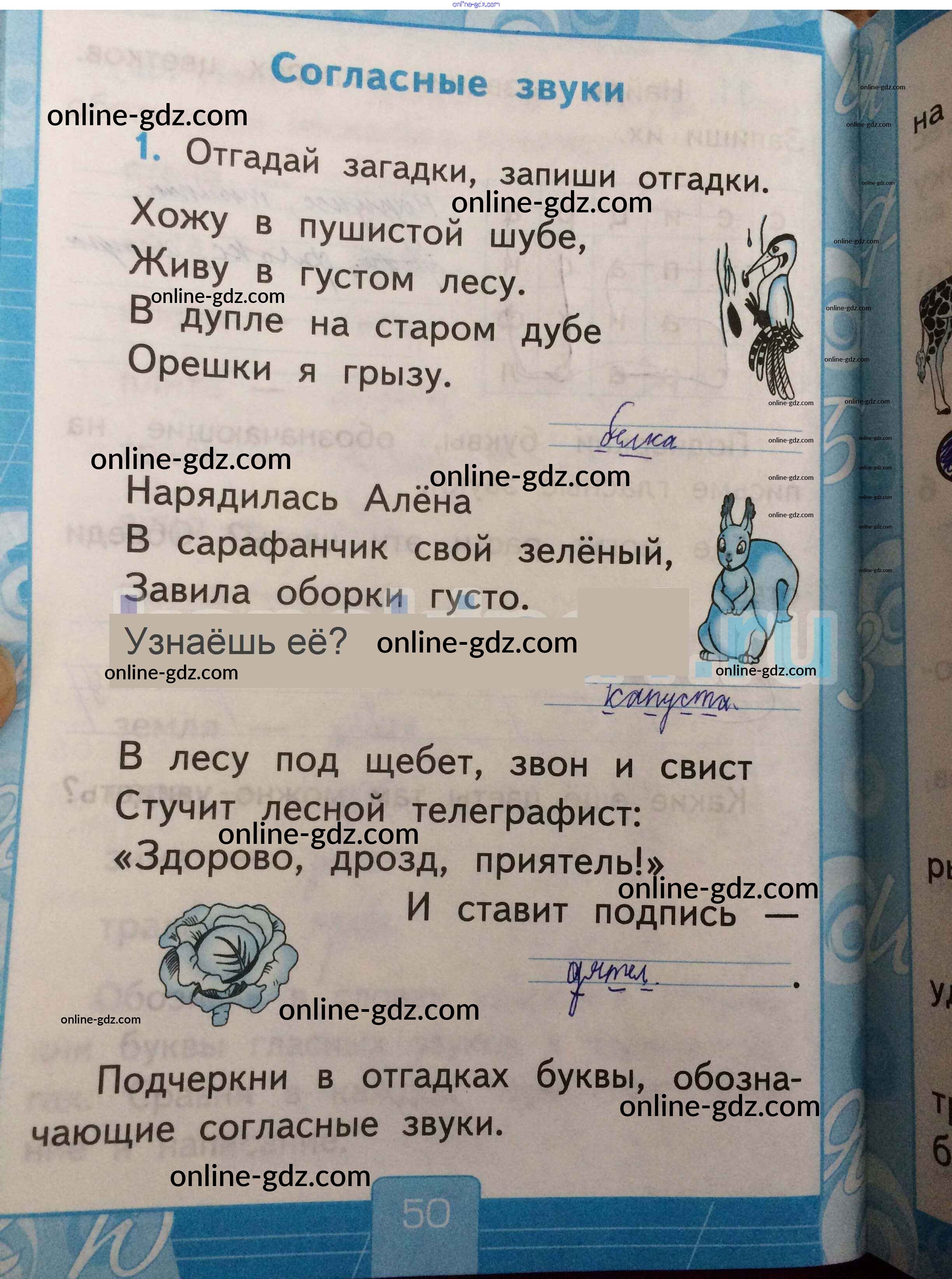 Готовые домашние задания по Русскому языку за 1 класс Рабочая тетрадь Тихомирова УМК 2016 - Страницы 50