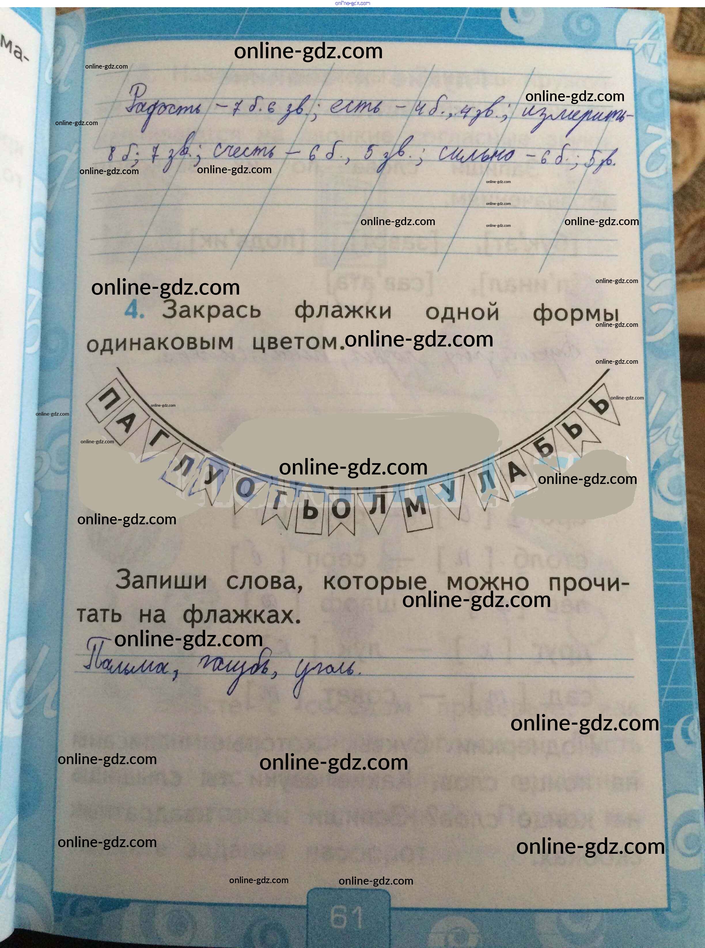 Готовые домашние задания по Русскому языку за 1 класс Рабочая тетрадь Тихомирова УМК 2016 - Страницы 61