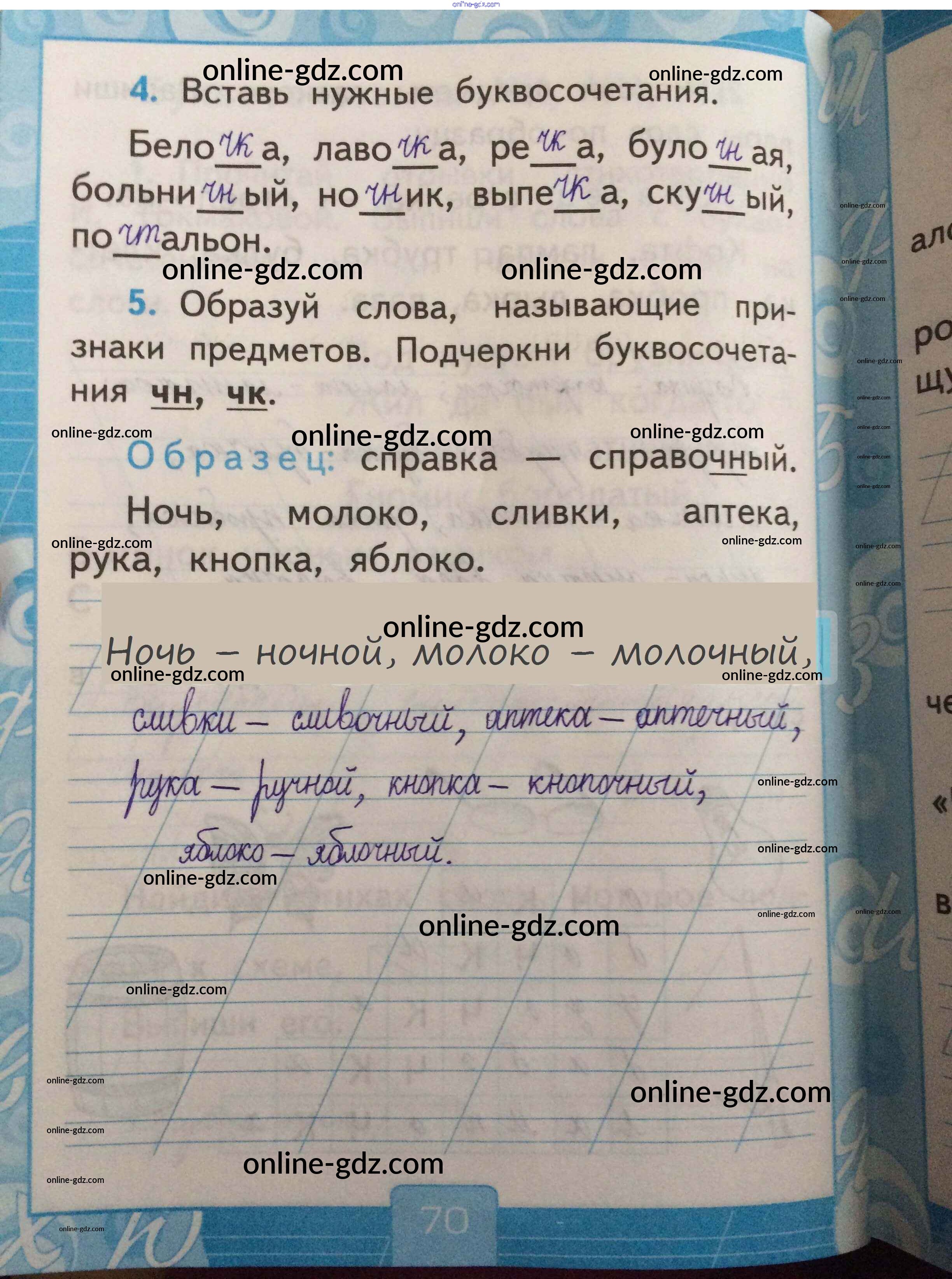 Готовые домашние задания по Русскому языку за 1 класс Рабочая тетрадь Тихомирова УМК 2016 - Страницы 70