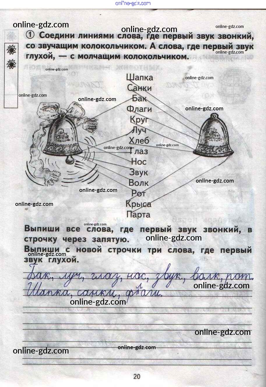 Готовые домашние задания по Русскому языку за 1 класс Тетрадь для самостоятельной работы Гольфман, Чуракова Перспективная начальная школа 2016 - Страницы 20