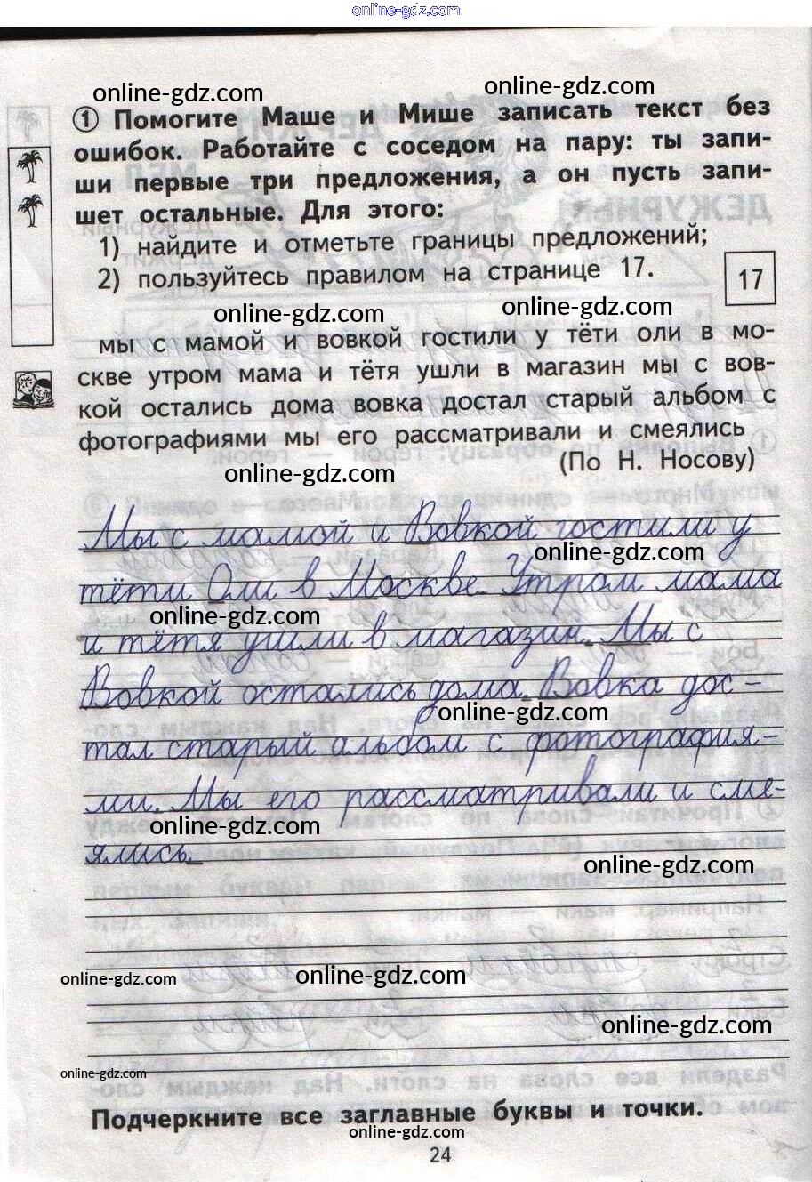 Готовые домашние задания по Русскому языку за 1 класс Тетрадь для самостоятельной работы Гольфман, Чуракова Перспективная начальная школа 2016 - Страницы 24