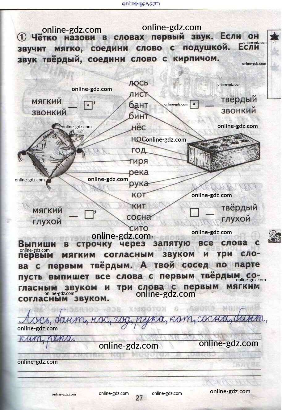Готовые домашние задания по Русскому языку за 1 класс Тетрадь для самостоятельной работы Гольфман, Чуракова Перспективная начальная школа 2016 - Страницы 27