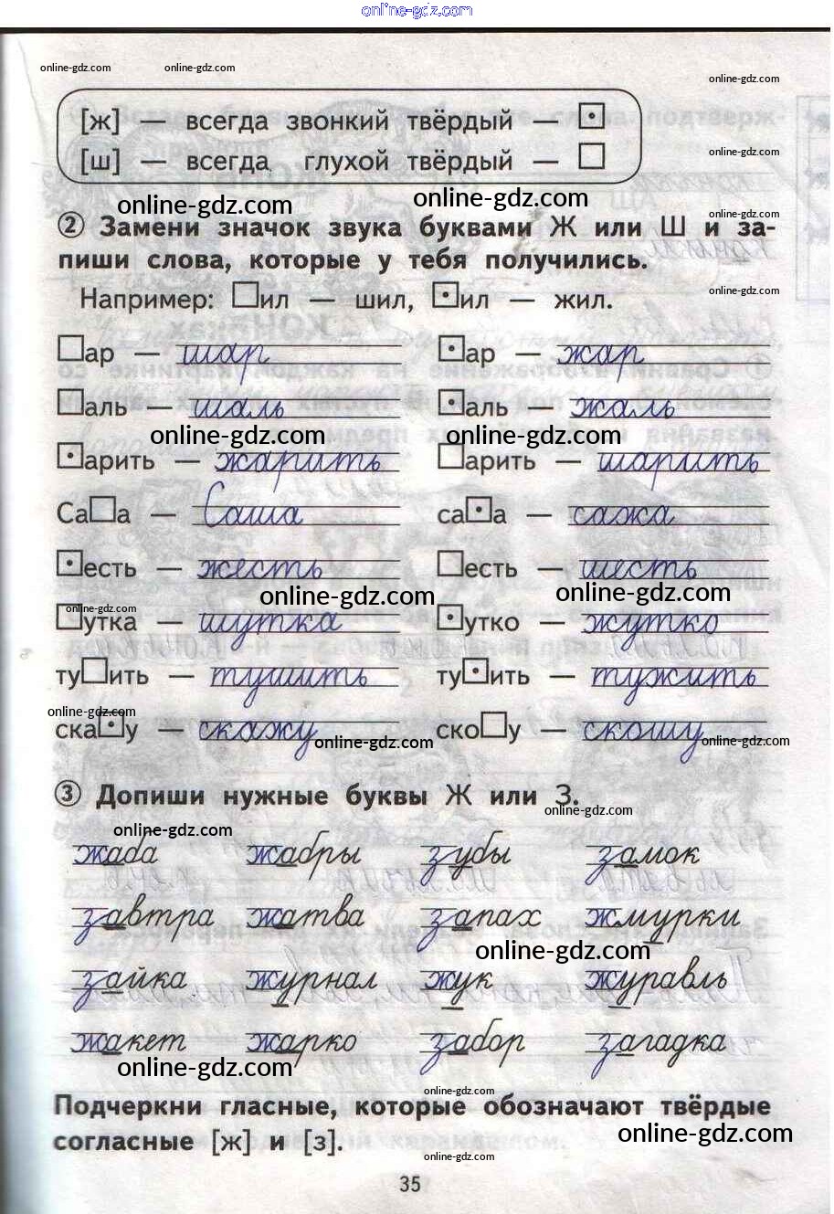Готовые домашние задания по Русскому языку за 1 класс Тетрадь для самостоятельной работы Гольфман, Чуракова Перспективная начальная школа 2016 - Страницы 35