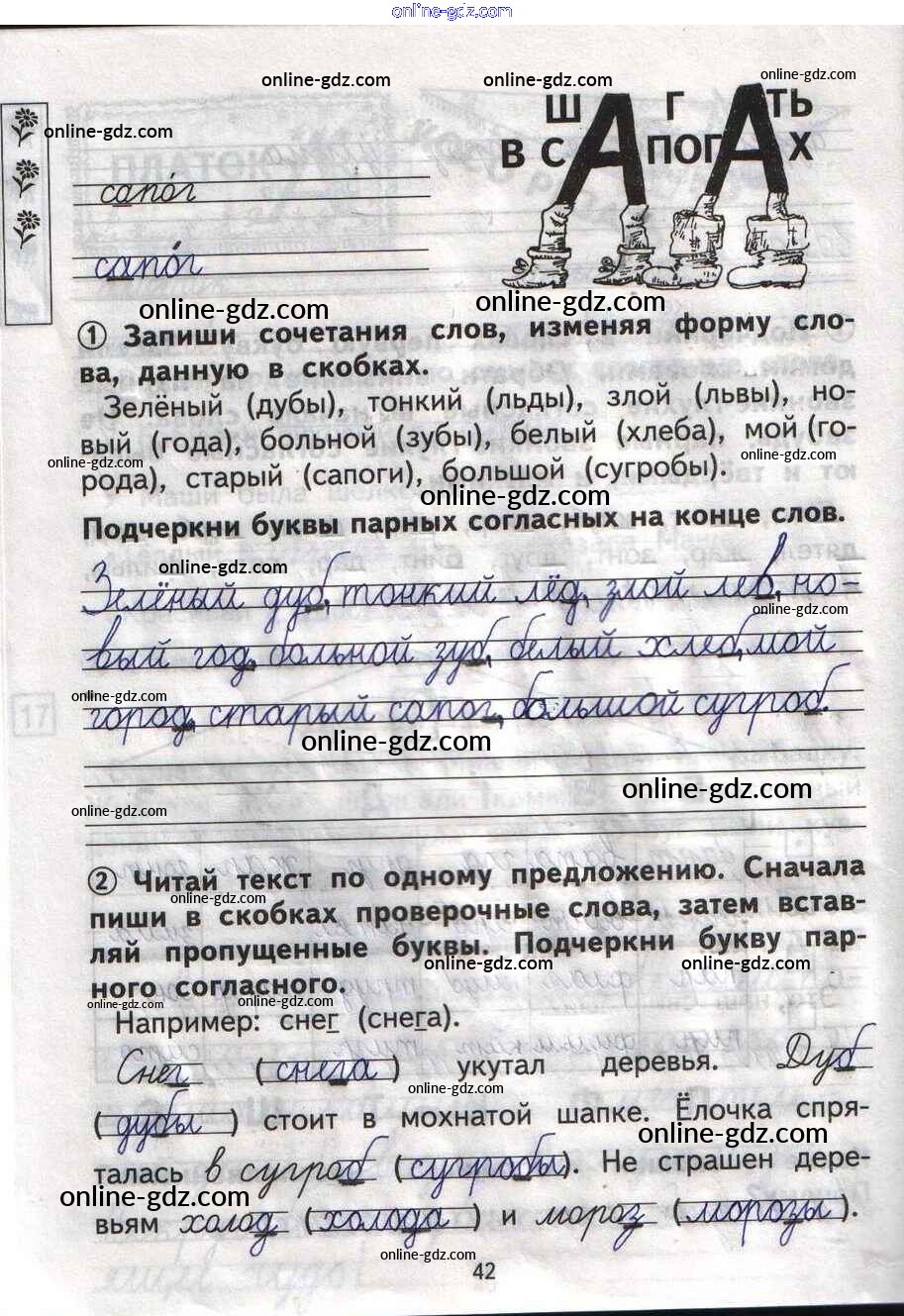 Готовые домашние задания по Русскому языку за 1 класс Тетрадь для самостоятельной работы Гольфман, Чуракова Перспективная начальная школа 2016 - Страницы 42
