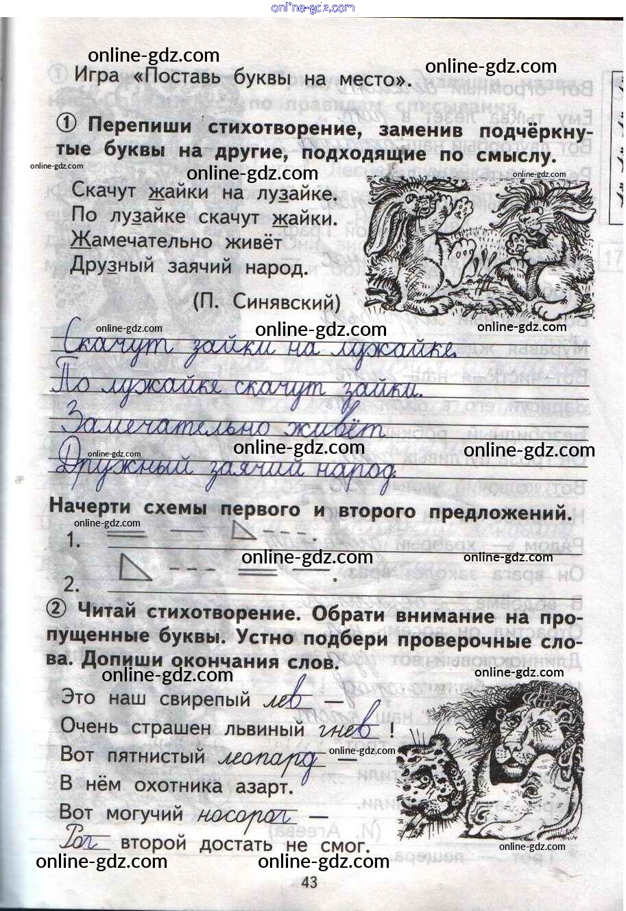 Готовые домашние задания по Русскому языку за 1 класс Тетрадь для самостоятельной работы Гольфман, Чуракова Перспективная начальная школа 2016 - Страницы 43