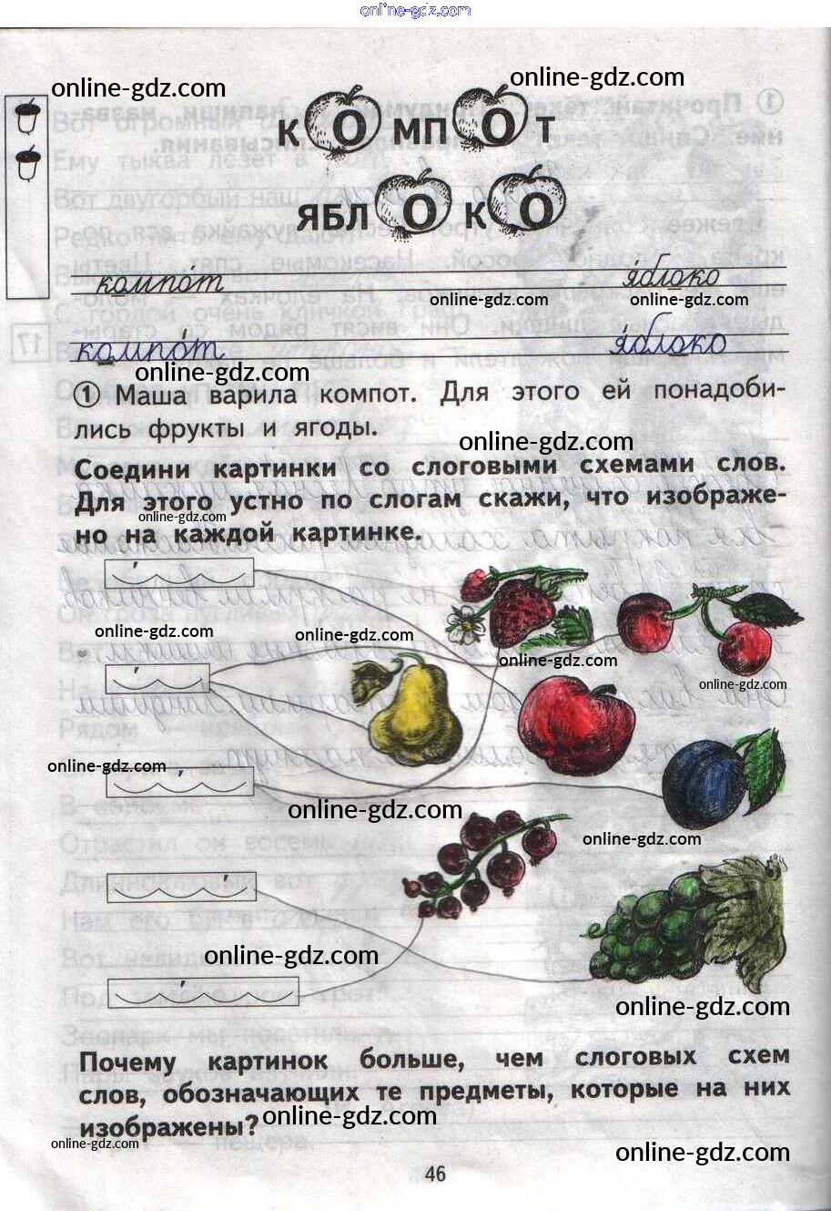 Готовые домашние задания по Русскому языку за 1 класс Тетрадь для самостоятельной работы Гольфман, Чуракова Перспективная начальная школа 2016 - Страницы 46