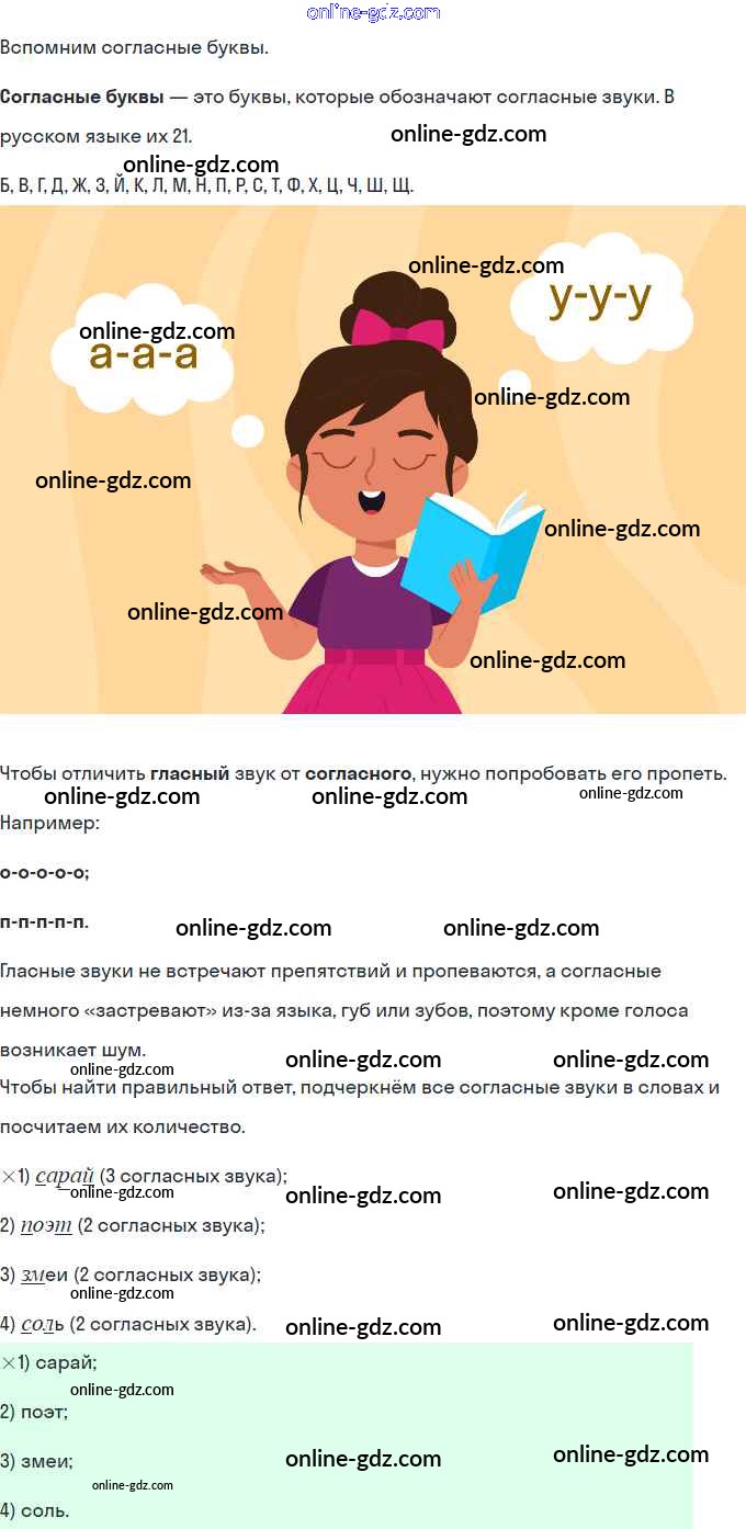 Готовые домашние задания по Русскому языку за 1 класс Тетрадь-тренажер Яценко 2022 - Вариант 2 Тест 8. Согласные звуки 5