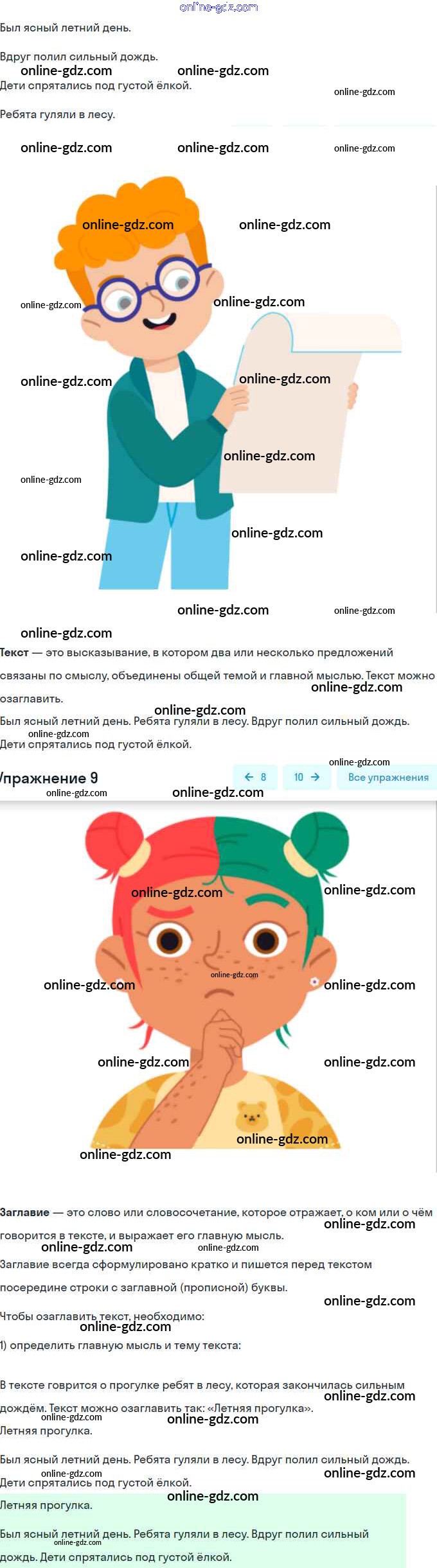 Готовые домашние задания по Русскому языку за 1 класс Тренажёр Тихомирова Тренажёр 2022 - Предложение. Текст. Речь. 9